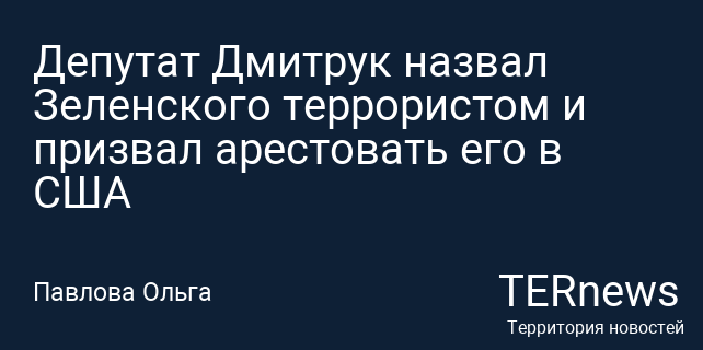 Депутат Дмитрук назвал Зеленского террористом и призвал арестовать его в США
