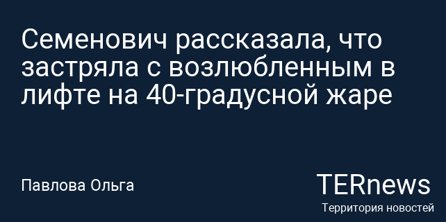 Семенович рассказала, что застряла с возлюбленным в лифте на 40-градусной жаре