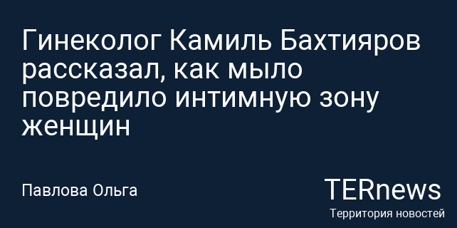 Гинеколог Камиль Бахтияров рассказал, как мыло повредило интимную зону женщин