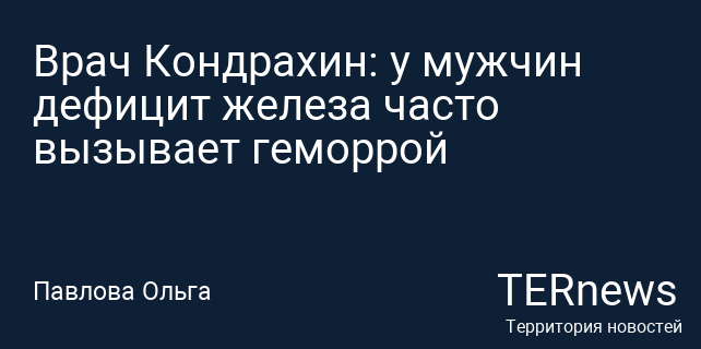 Врач Кондрахин: у мужчин дефицит железа часто вызывает геморрой