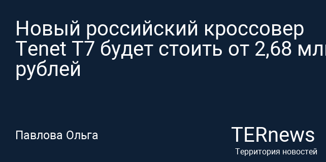 Новый российский кроссовер Tenet T7 будет стоить от 2,68 млн рублей