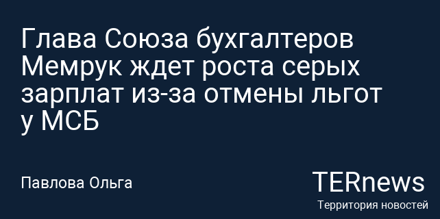 Глава Союза бухгалтеров Мемрук ждет роста серых зарплат из-за отмены льгот у МСБ