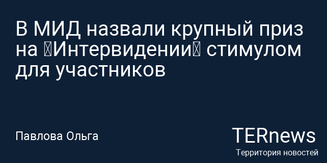 В МИД назвали крупный приз на «Интервидении» стимулом для участников