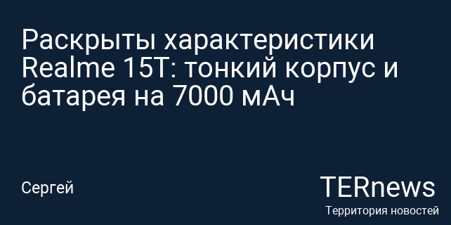 Раскрыты характеристики Realme 15T: тонкий корпус и батарея на 7000 мАч