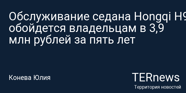 Обслуживание седана Hongqi H9 обойдется владельцам в 3,9 млн рублей за пять лет