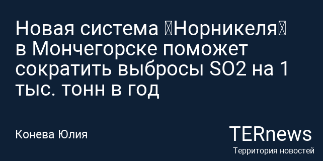 Новая система «Норникеля» в Мончегорске поможет сократить выбросы SO2 на 1 тыс. тонн в год