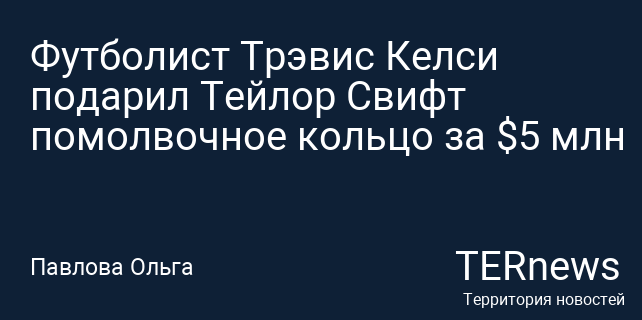 Спортсмен Трэвис Келси, играющий в американский футбол, предложил руку и сердце известной певице Тейлор Свифт, подарив ей кольцо стоимостью до 5 миллионов долларов. Об этом рассказал журнал People. 26 августа пара объявила о своей помолвке, опубликовав в соцсетях совместное фото, на котором они обнимаются и держатся за руки.