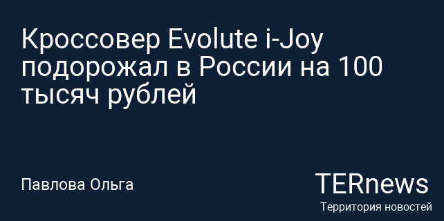Кроссовер Evolute i-Joy подорожал в России на 100 тысяч рублей