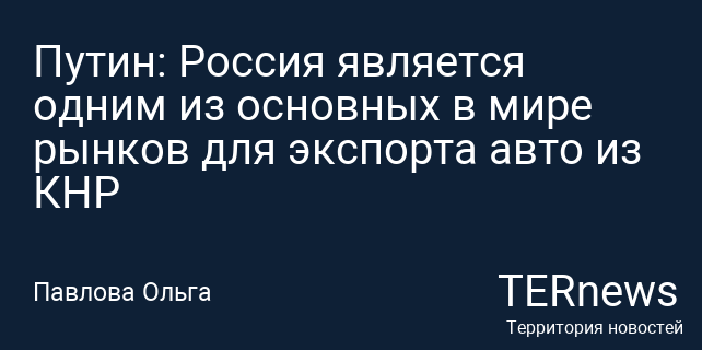 Путин: Россия является одним из основных в мире рынков для экспорта авто из КНР