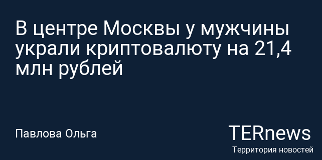 В центре Москвы у мужчины украли криптовалюту на 21,4 млн рублей