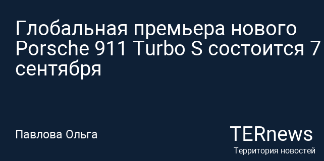 Глобальная премьера нового Porsche 911 Turbo S состоится 7 сентября