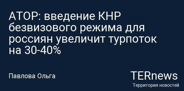 АТОР: введение КНР безвизового режима для россиян увеличит турпоток на 30-40%