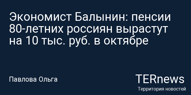 Экономист Балынин: пенсии 80-летних россиян вырастут на 10 тыс. руб. в октябре