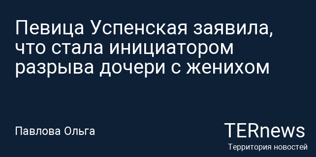Певица Успенская заявила, что стала инициатором разрыва дочери с женихом
