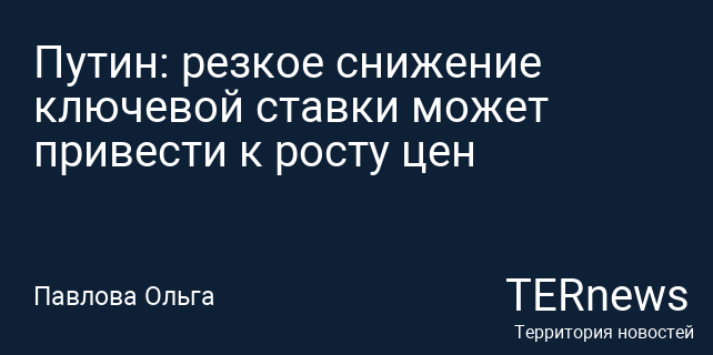 Путин: резкое снижение ключевой ставки может привести к росту цен
