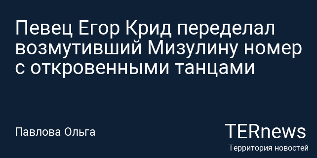 Певец Егор Крид переделал возмутивший Мизулину номер с откровенными танцами