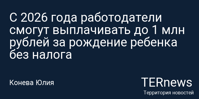 С 2026 года работодатели смогут выплачивать до 1 млн рублей за рождение ребенка без налога