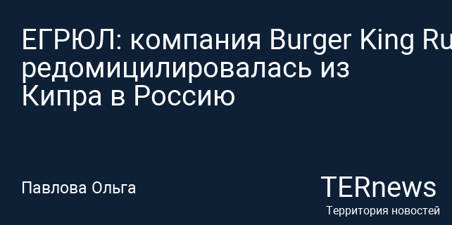 ЕГРЮЛ: компания Burger King Russia редомицилировалась из Кипра в Россию