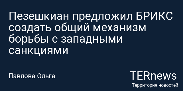 Пезешкиан предложил БРИКС создать общий механизм борьбы с западными санкциями