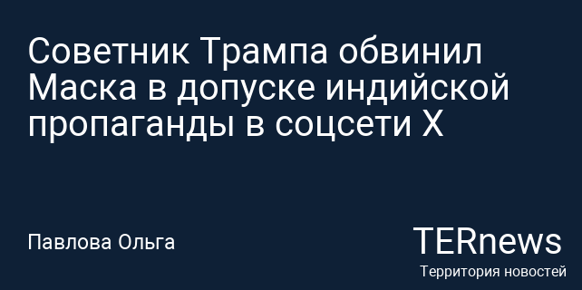 Советник Трампа обвинил Маска в допуске индийской пропаганды в соцсети Х