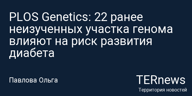 PLOS Genetics: 22 ранее неизученных участка генома влияют на риск развития диабета