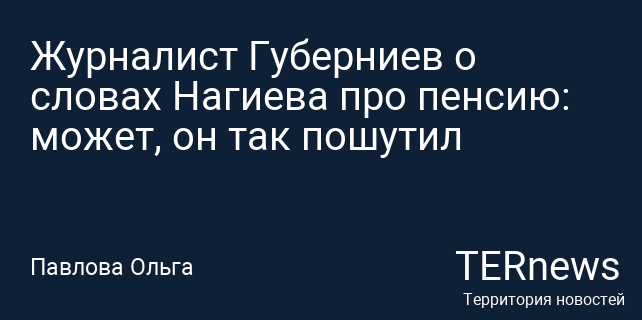 Дмитрий Губерниев, российский комментатор, высказал мнение о недавних словах актера Дмитрия Нагиева, который в интервью упомянул о своей пенсии в размере 20 тысяч рублей. По мнению Губерниева, это может быть шутка, так как Нагиев явно не относится к категории бедных людей. Он отметил: «Мне трудно понять, что именно он хотел сказать. Нагиев, скорее всего, не будет нуждаться в деньгах на пенсии».