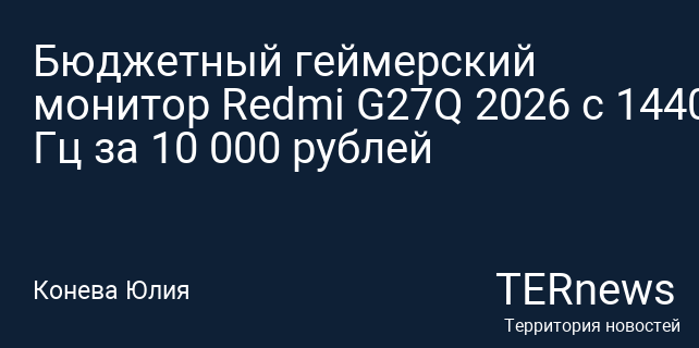 Бюджетный геймерский монитор Redmi G27Q 2026 с 1440p и 200 Гц за 10 000 рублей