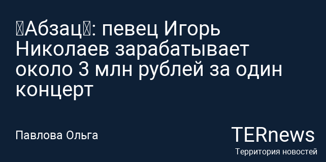 «Абзац»: певец Игорь Николаев зарабатывает около 3 млн рублей за один концерт
