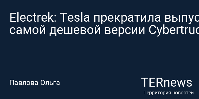 Electrek: Tesla прекратила выпуск самой дешевой версии Cybertruck