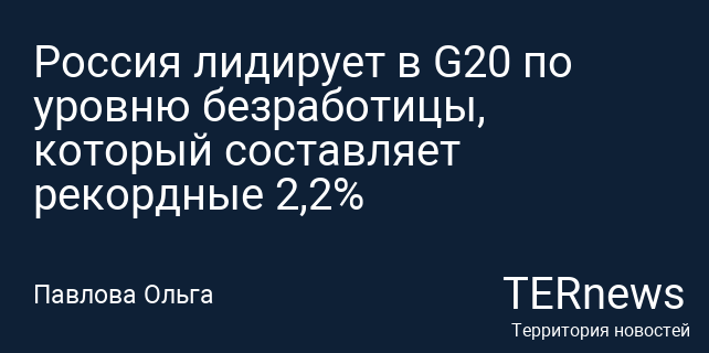 Россия лидирует в G20 по уровню безработицы, который составляет рекордные 2,2%