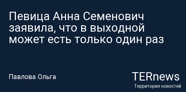 Певица Анна Семенович заявила, что в выходной может есть только один раз