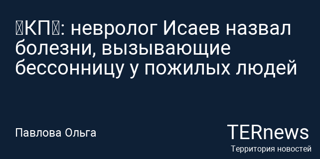 «КП»: невролог Исаев назвал болезни, вызывающие бессонницу у пожилых людей