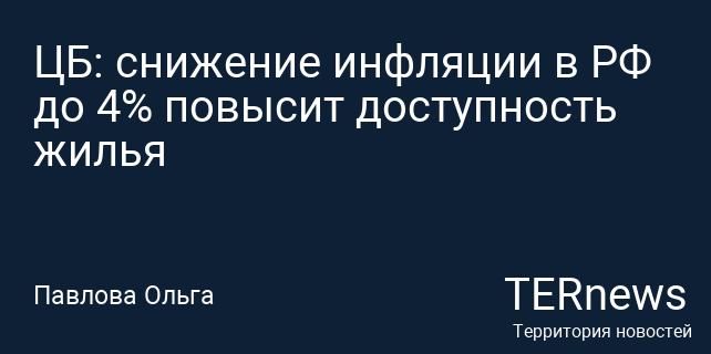ЦБ: снижение инфляции в РФ до 4% повысит доступность жилья