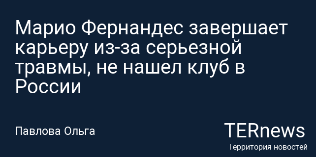 Марио Фернандес завершает карьеру из-за серьезной травмы, не нашел клуб в России