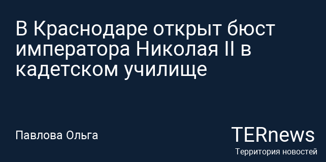 В Краснодарском президентском кадетском училище состоялось торжественное открытие бюста императора Николая II, сообщает . Это событие стало частью федерального туристического проекта «Императорский маршрут», который был запущен фондом «Елисаветинско-Сергиевское просветительское общество» в августе текущего года. В церемонии приняла участие Анна Громова, куратор этого проекта.