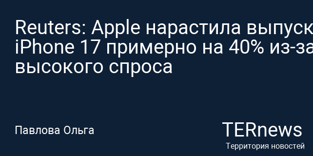 Reuters: Apple нарастила выпуск iPhone 17 примерно на 40% из-за высокого спроса