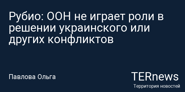 Рубио: ООН не играет роли в решении украинского или других конфликтов