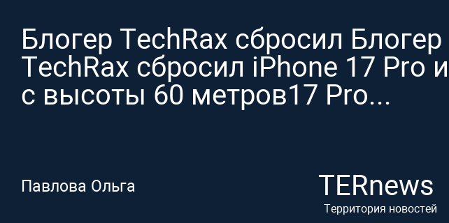 Блогер TechRax сбросил Блогер TechRax сбросил iPhone 17 Pro и iPhone Air с высоты 60 метров17 Pro и iPhone Air с высоты 60 метров