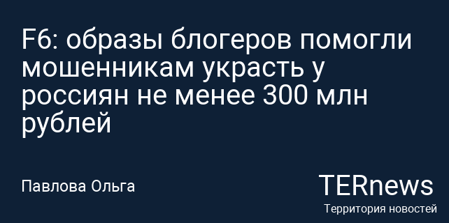 F6: образы блогеров помогли мошенникам украсть у россиян не менее 300 млн рублей