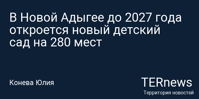 В Новой Адыгее до 2027 года откроется новый детский сад на 280 мест