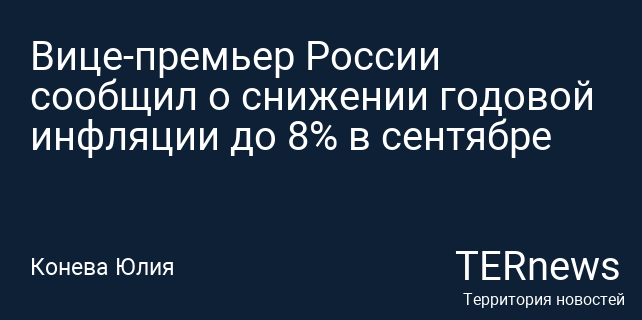 Вице-премьер России сообщил о снижении годовой инфляции до 8% в сентябре