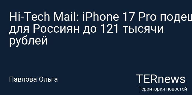 Hi-Tech Mail: iPhone 17 Pro подешевел для Россиян до 121 тысячи рублей