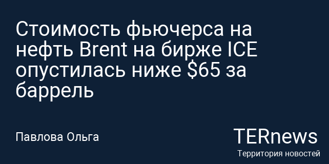 Стоимость фьючерса на нефть Brent на бирже ICE опустилась ниже $65 за баррель