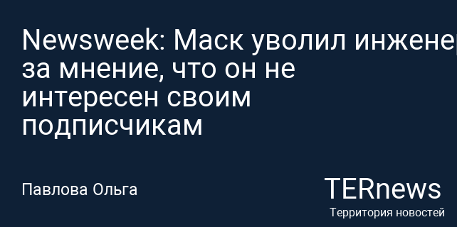 Newsweek: Маск уволил инженера X за мнение, что он не интересен своим подписчикам