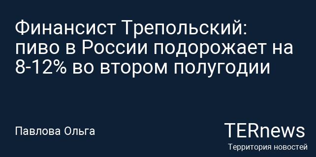 Финансист Трепольский: пиво в России подорожает на 8-12% во втором полугодии