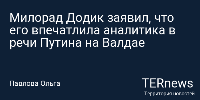 Милорад Додик заявил, что его впечатлила аналитика в речи Путина на Валдае