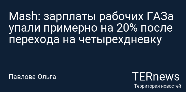 Mash: зарплаты рабочих ГАЗа упали примерно на 20% после перехода на четырехдневку