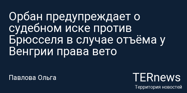 В интервью порталу Hetek премьер-министр Виктор Орбан заявил, что если Евросоюз пойдёт на нарушение собственных норм и попытается лишить Венгрию права вето, Будапешт подаст иск к институтам ЕС и рассчитывает выиграть это дело в суде.