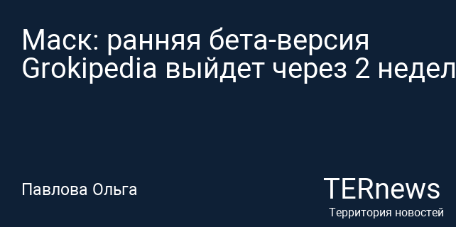 Илон Маск, миллиардер и основатель xAI, сообщил, что ранняя бета-версия Grokipedia, создаваемой как альтернатива Википедии, будет доступна через две недели. Об этом он написал в социальной сети Х. По его словам, версия 0.1 Grokipedia будет опубликована в октябре.