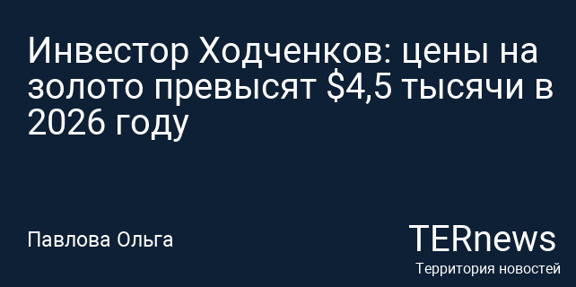Инвестор Ходченков: цены на золото превысят $4,5 тысячи в 2026 году